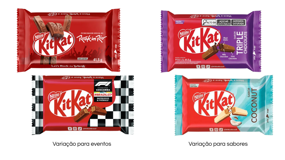 O caso da KitKat mostra bem como funciona a aplicação para edições limitadas. A marca já utilizou embalagens distintas para apresentar sabores limitados e variações para eventos, como o Rock in Rio. Essa estratégia mantém o chocolate sempre relevante no ponto de venda e desperta no consumidor a vontade de experimentar cada nova versão que aparece.